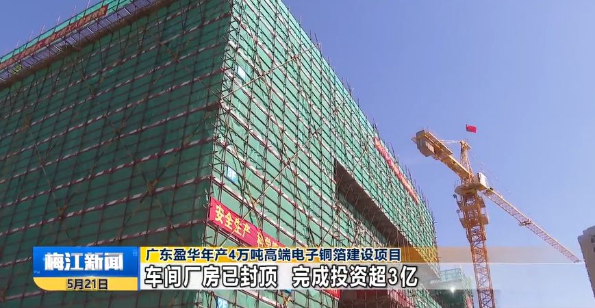 梅江“蝶变”进行时 省重点:广东盈华高端电子铜箔项目一期厂房封顶
